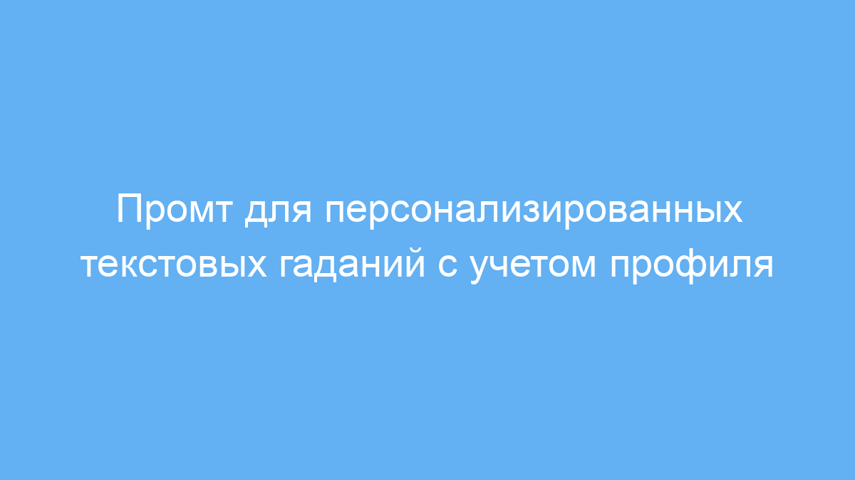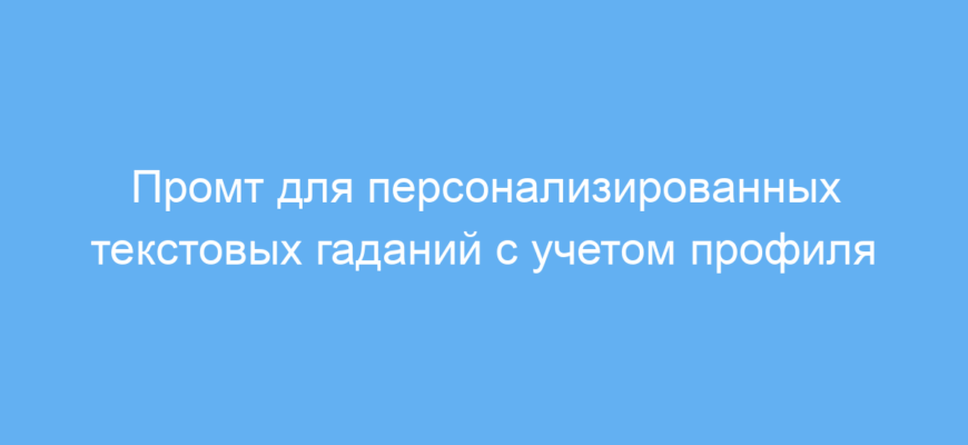 Использование данного промта позволяет создавать качественные, персонализированные гадания, которые учитывают множество факторов пользователя и делают предсказания полезными и структурированными. Это экономит время, упрощает взаимодействие и повышает вовлеченность аудитории за счет чётких советов и интерактивного общения.