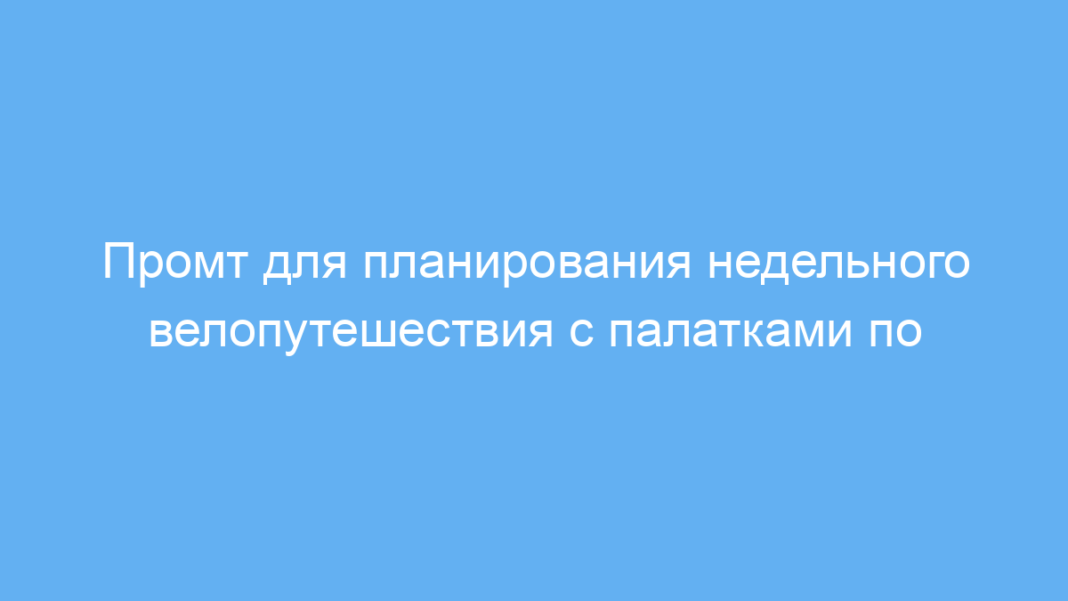Этот промт значительно упрощает процесс самостоятельного планирования многодневного велосипедного путешествия с ночёвками на природе. Он помогает получить чёткий и удобный маршрут с визуальной поддержкой — картой — что экономит ваше время и делает подготовку к поездке комфортной и организованной.
