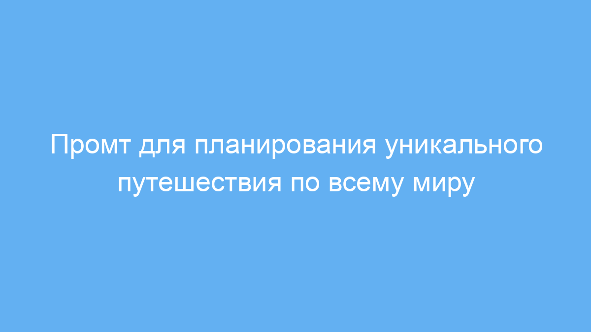 Промт помогает решить проблему выбора путешествия, когда хочется избежать стандартных маршрутов и получить рекомендации, максимально соответствующие требованиям. Вместо многодневных исследований, пользователь быстро получает подборку уникальных вариантов, которые можно использовать как основу для деталей поездки.