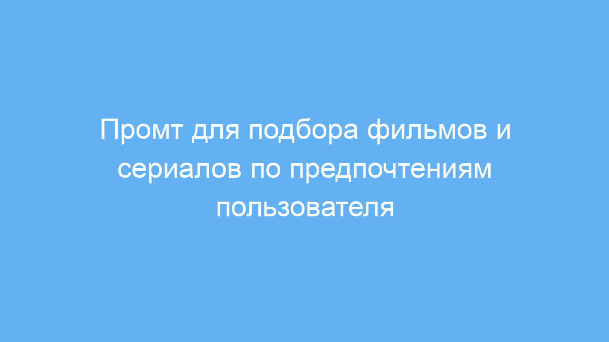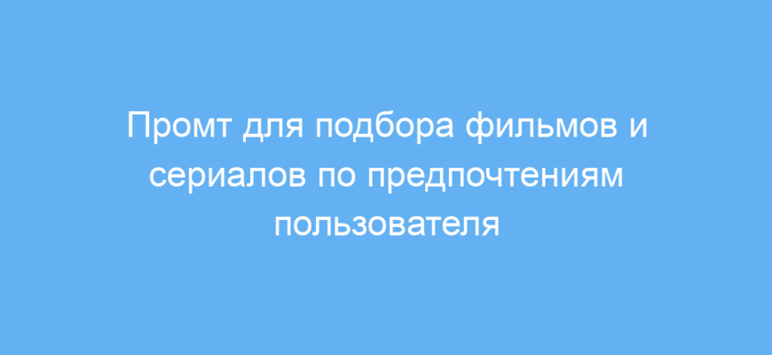 Этот промт создан для тех, кто хочет быстро и удобно получить персональные рекомендации по фильмам и сериалам с помощью нейросети. Он особенно полезен для владельцев видео-магазинов, киносайтов, а также для киноманов, которые ищут новые интересные проекты на просмотр.