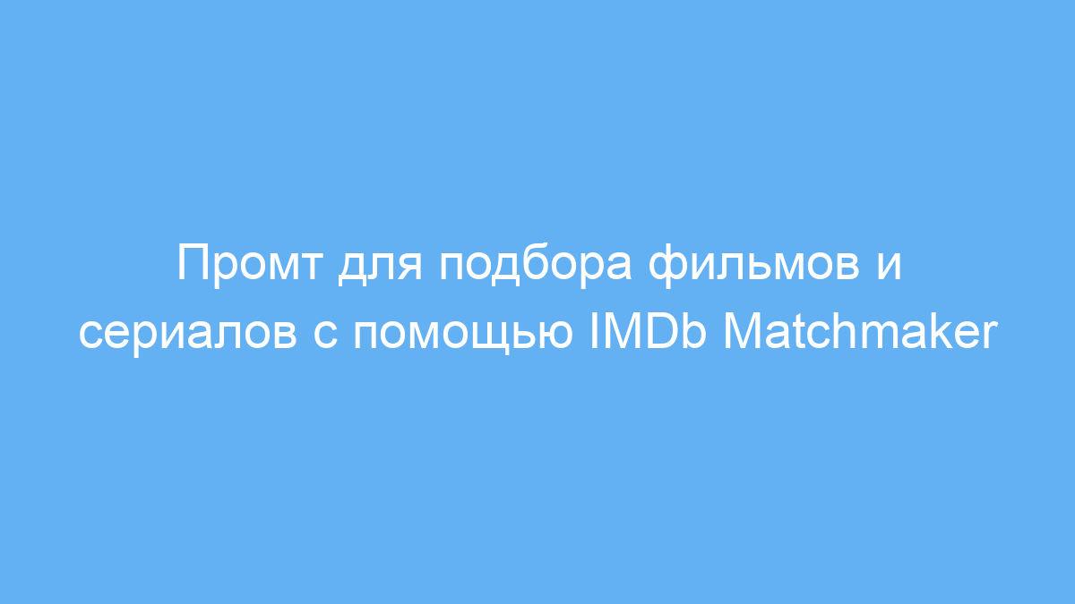Этот промт создан для пользователей, которые хотят получить персонализированные рекомендации фильмов и сериалов. Если вы устали тратить время на поиск интересного контента или не знаете, что посмотреть дальше, этот сервис решит вашу проблему. IMDb Matchmaker использует данные из большой базы IMDb: анализирует жанры, режиссеров, актеров, рейтинги и отзывы, чтобы предложить подборку, максимально соответствующую вашим вкусам.