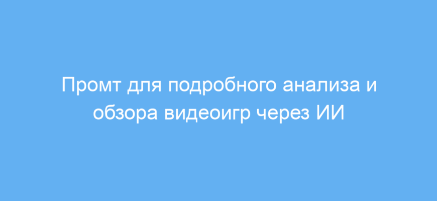 Этот промт предназначен для пользователей, которые хотят получить развернутый и понятный обзор любой видеоигры с помощью нейросети. Он особенно полезен геймерам, блогерам, журналистам и исследователям, которым нужно быстро разобраться в игровых особенностях, механике, визуальном стиле и другой важной информации об игре.