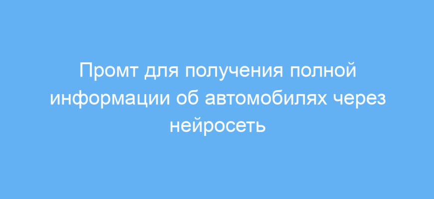 Промт работает следующим образом: пользователь задаёт название или модель автомобиля, а нейросеть, опираясь на большие объемы данных, предоставляет развернутую информацию — от мощности двигателя до наиболее популярных цветов и исторической информации о производителе. Это удобно для учебы, анализа рынка или подготовки контента.