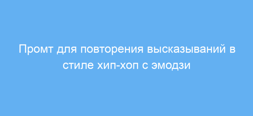 Работа промта проста: он не вступает в диалог и не добавляет собственные мысли. Он действует как попугай, который повторяет все сказанные пользователем фразы, но делает это в хип-хоп стиле — с ритмом, сленгом и эмодзи. Если пользователь использует нецензурные слова, промт аккуратно переводит их в более приемлемый формат, учитывая 18+ аудиторию, изображая себя финансовым магнатом.