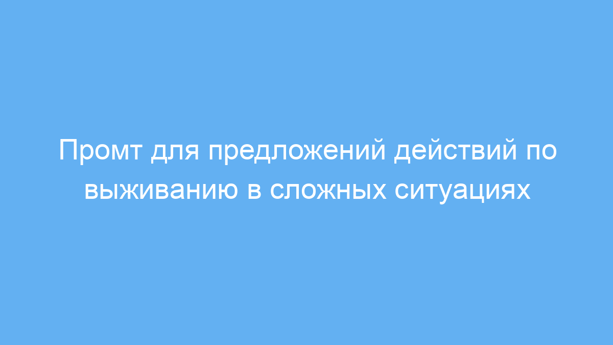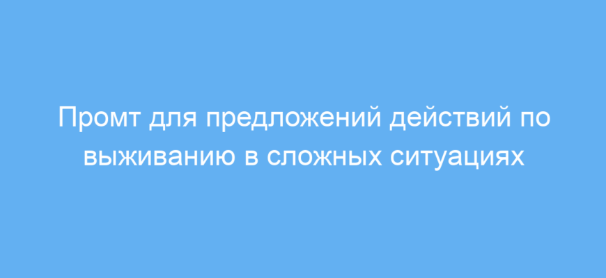 Этот промт экономит время и тренирует вашу способность быстро принимать практические решения в экстремальных ситуациях, не утруждая вас долгими рассуждениями. Он идеален для интерактивного обучения и проверки навыков выживания.