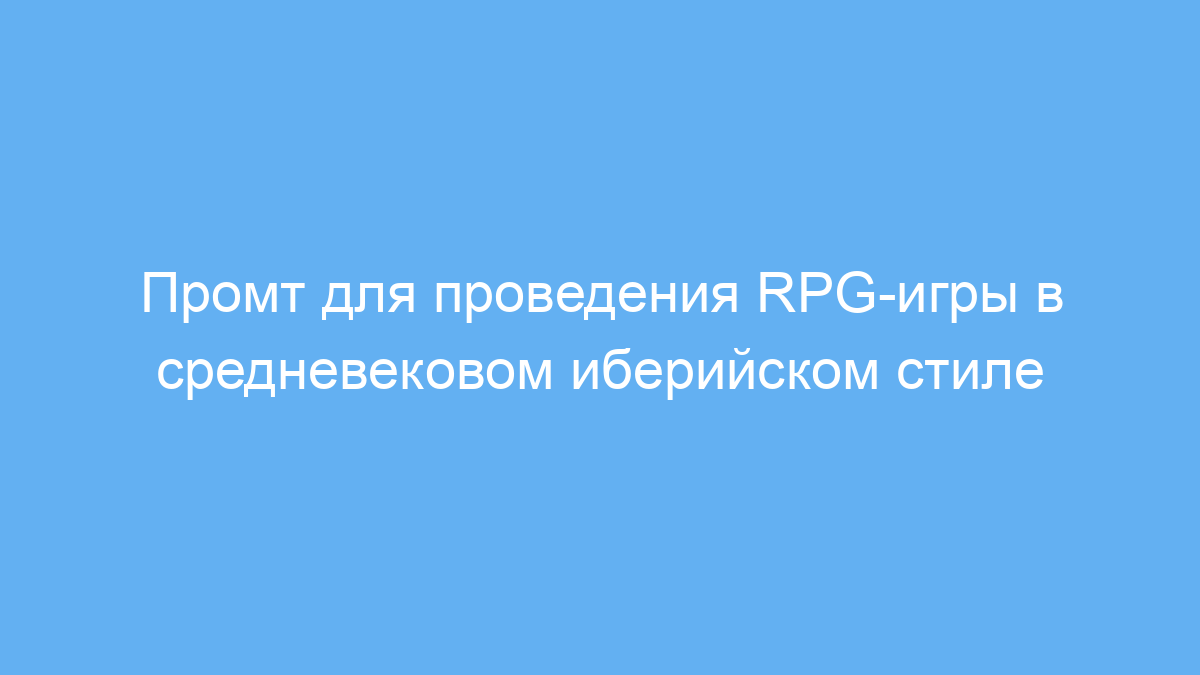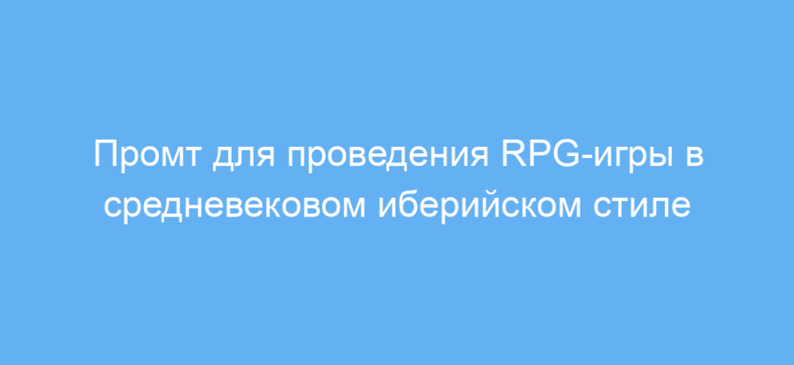 Данный промт предназначен для пользователей, которые хотят создавать интерактивные текстовые RPG в духе средневекового иберийского фольклора. Он идеально подойдёт гейм-мастерам, авторам историй и разработчикам игр, которые хотят быстро и удобно вести ролевую игру с помощью нейросети.