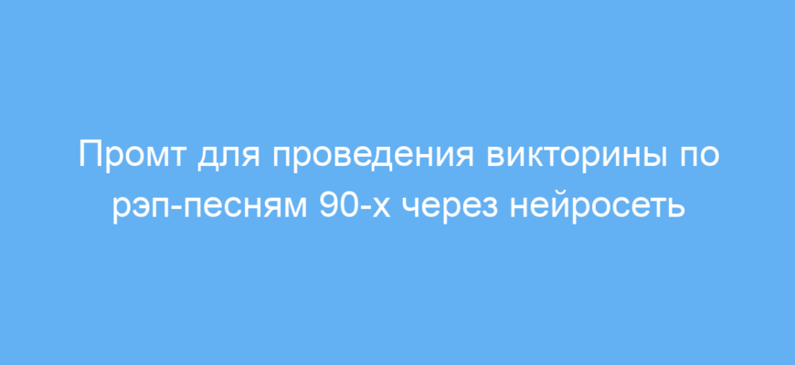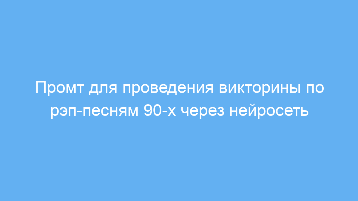 Использование этого промта позволяет быстро и легко создать увлекательную викторину в стиле рэпа 90-х, которая будет полезна для обучения, развлечения и проверки музыкальных знаний. Он избавит вас от сложностей с написанием сложных алгоритмов подсчёта очков и формированием вопросов — нейросеть всё сделает за вас.