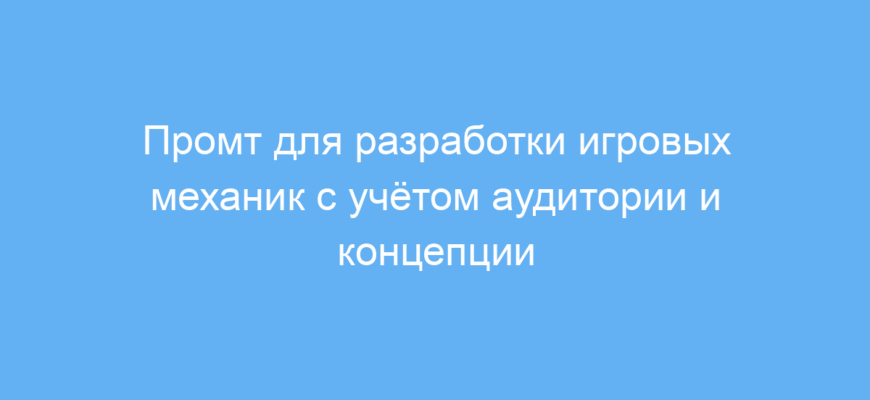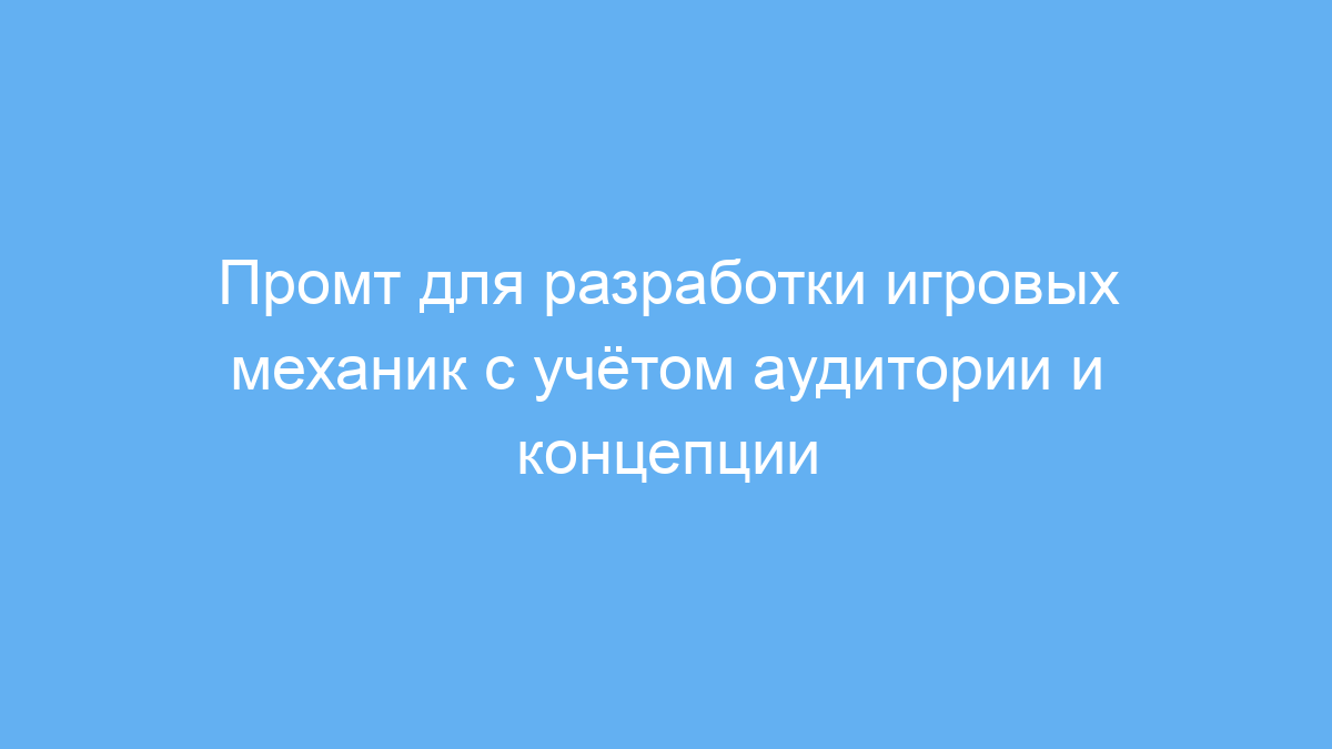 Этот промт предназначен для геймдизайнеров, разработчиков игр и сценаристов, которые хотят создавать продуманные и увлекательные игровые механики. Он помогает структурировать процесс проектирования, задавая ключевые вопросы о цели игры, целевой аудитории и типе игрового процесса. Благодаря этому промту можно избежать ошибок на ранних этапах разработки, правильно выбрать баланс между сложностью и доступностью, а также учесть предпочтения игроков – будь то pay-to-win или free-to-play.