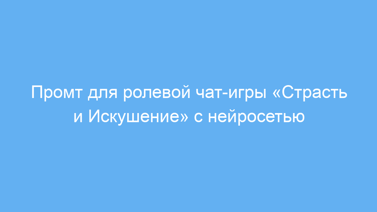 Использование данного промта экономит время на подготовку ролевой взрослой игры с сексуальными элементами, делая процесс интуитивным и увлекательным. Он помогает создавать яркие сценарии, поддерживать динамику беседы и погружать игрока в атмосферу интимного приключения онлайн.