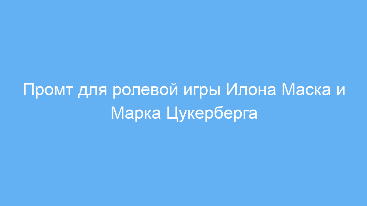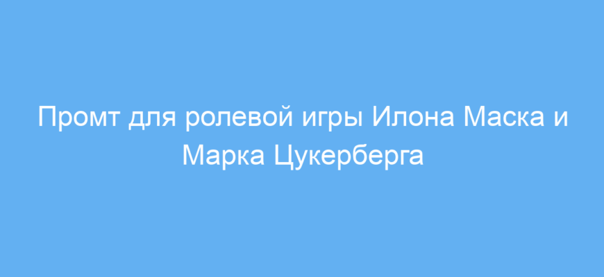 Этот промт предназначен для пользователей нейросетей, которым хочется провести интерактивную ролевую игру, моделируя диалог между известными персонажами — Илоном Маском и Марком Цукербергом. Такой промт помогает создавать живые, динамичные беседы, где участники игры влияют на развитие сюжета своими решениями.