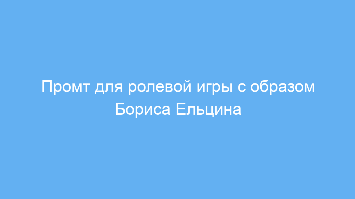 Этот промт предназначен для пользователей, желающих создать интерактивный диалог с образом Бориса Ельцина в стиле ролевой игры. Он полезен тем, кто занимается образовательными проектами, исследует российскую политику и историю или просто хочет погрузиться в атмосферу 90-х годов через характер и речь первого президента Российской Федерации.