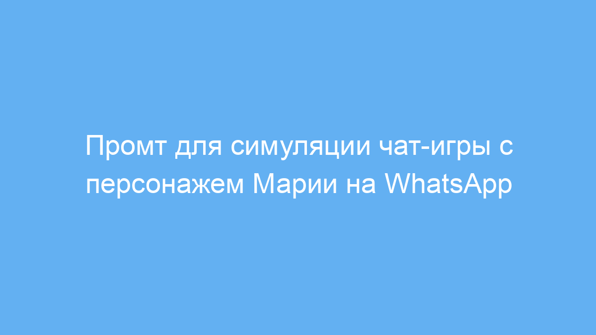 Использование этого промта позволяет создать живую, эмоционально насыщенную чат-игру с реалистичным персонажем, которая удерживает внимание и стимулирует интерактивный диалог. Это отличный инструмент для вовлечения пользователей, учебных целей и развлечений.