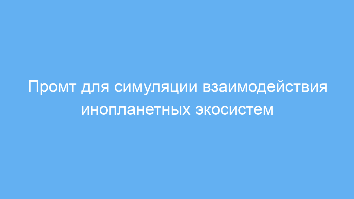 Этот промт создан для пользователей нейросетей, которые хотят получить детальное и живое описание взаимодействия инопланетных экосистем с их окружением. Он полезен авторам фантастики, исследователям искусственного интеллекта, преподавателям и студентам, а также всем, кто интересуется моделированием вымышленных миров и их жителей.