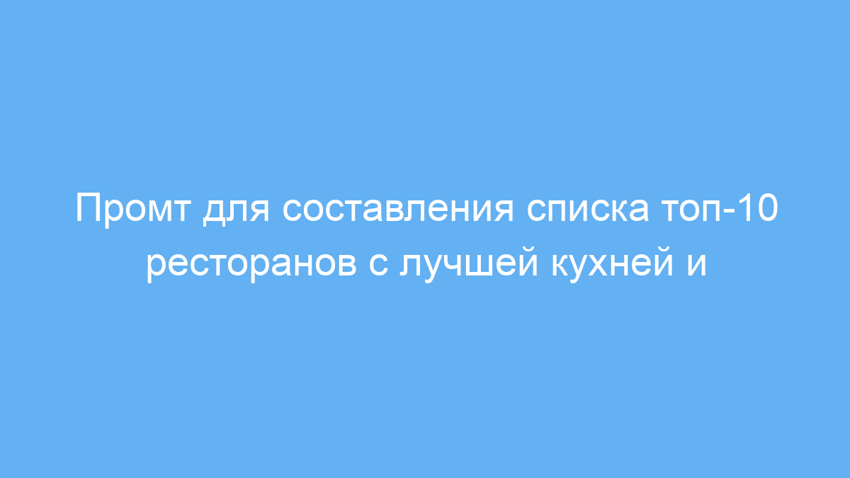 - Если нужно подробное описание каждого ресторана, дополните промт запросом на детали (например, часы работы, тип кухни, отзывы).