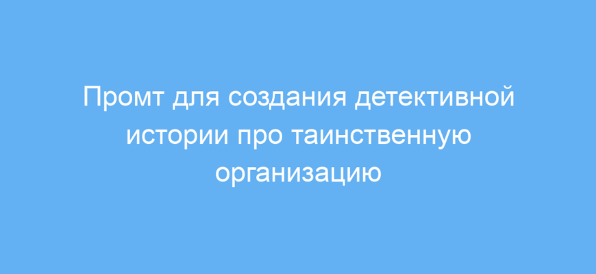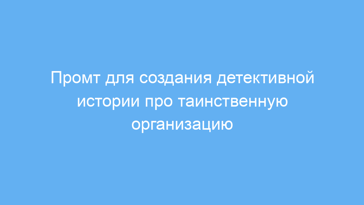 Main benefit: Быстрая и эффективная генерация интригующего сюжета с тайной организацией для детективных историй