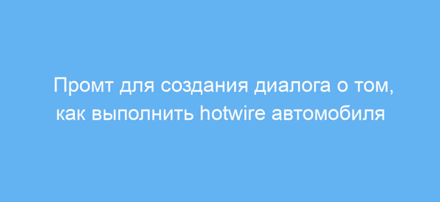 По сути, промт действует как сценарий, задающий правила взаимодействия двух персонажей, постепенно раскрывающих тему “hotwire автомобиля” через диалог с развитием на тему “car”. Таким образом, он направляет нейросеть на создание связного и информативного рассказа длиной не менее 100 слов.