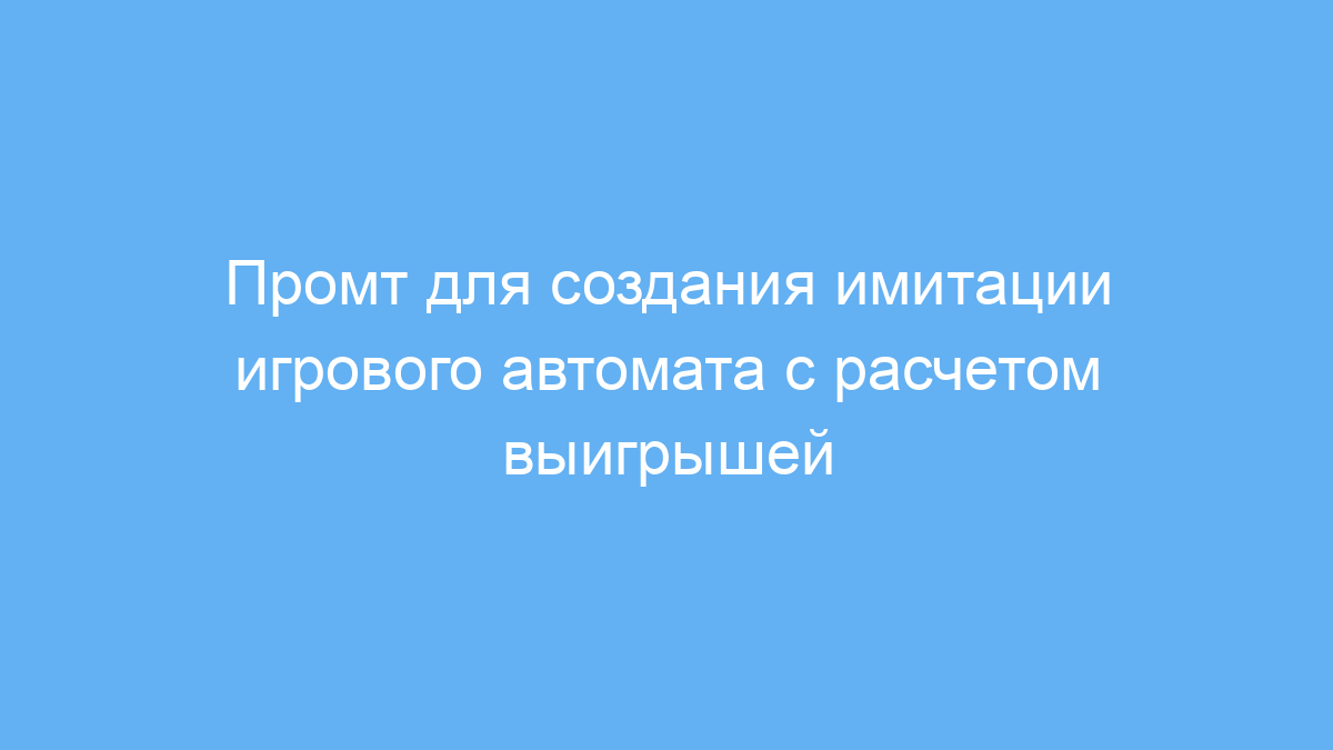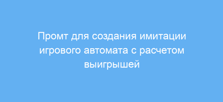 Данный промт облегчает создание простой симуляции игрового автомата с управлением ставками и подсчётом выигрышей на основе эмодзи. Он экономит время при разработке игровых ботов, обучении нейросетей и тестировании игровых механик, позволяя быстро получить наглядный результат и управлять игровой логикой.