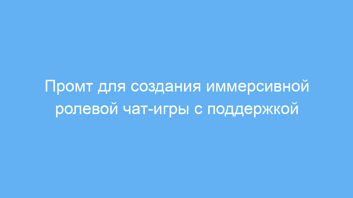 Этот промт предназначен для разработчиков игр, создателей интерактивного контента и энтузиастов, которые хотят быстро создать сложную ролевую чат-игру с богатыми элементами. Он помогает сгенерировать подробное описание игрового мира, продумать систему взаимодействий с персонажами и проработать механику заданий и прогрессии. Благодаря этому промту можно сэкономить время, структурировать идеи и получить готовое текстовое наполнение для игры, которое можно интегрировать в нейросеть.