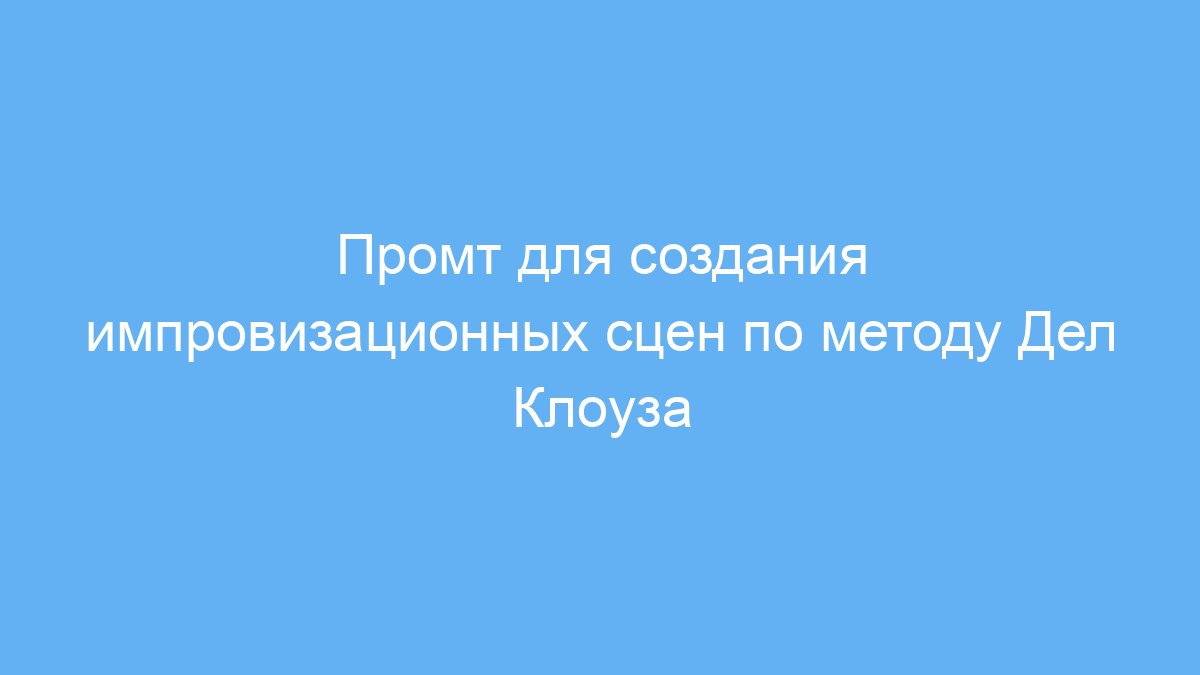 Промт решает задачи генерации органичных, динамичных и связанных между собой сцен с персонажами и сюжетом. Он помогает структурировать импровизацию на три этапа — постановка основы, развитие и объединение в запоминающийся финал, что облегчает процесс создания выступления или тренингового материала.