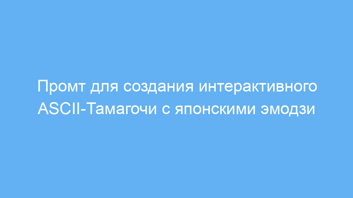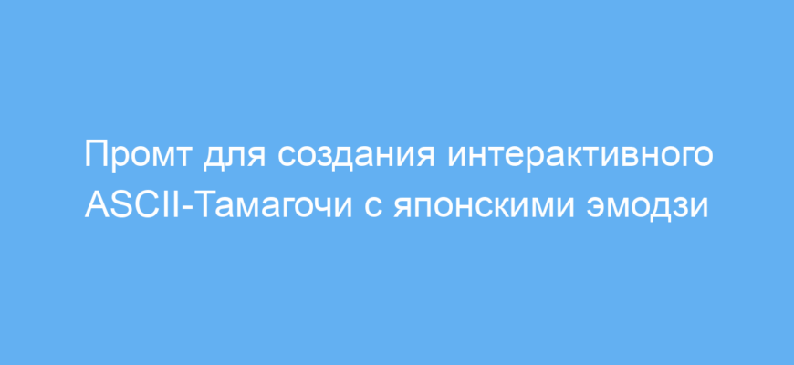 Промт описывает полный жизненный цикл Тамагочи — от рождения до взрослой стадии, с помощью четко заданных команд. Он контролирует показатели голода, счастья и энергии, предупреждая о критических состояниях и давая возможность начать игру заново. При каждом взаимодействии нейросеть использует ASCII-арт и японские эмодзи, что делает общение ярким и визуально привлекательным.