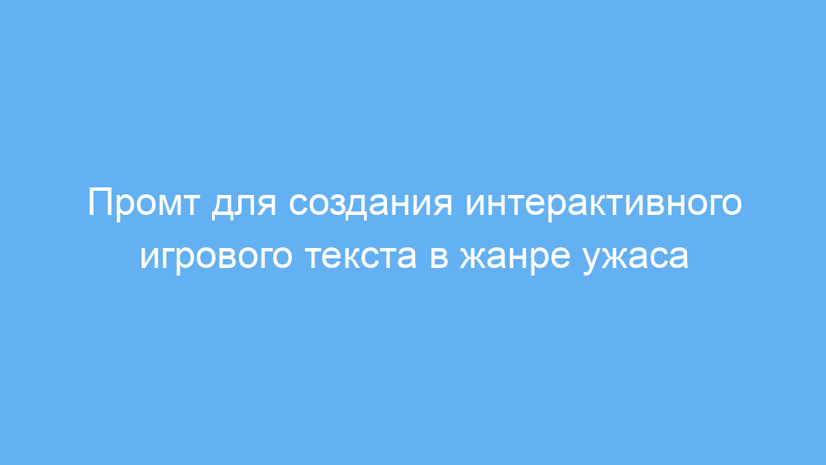 Этот промт позволит вам быстро и легко создавать захватывающие интерактивные тексты в жанре ужаса с глубоким сюжетом и сложной логикой действий. Он экономит время на сценарное планирование и помогает поддерживать напряжённую атмосферу благодаря встроенным психологическим элементам и системе случайных событий.