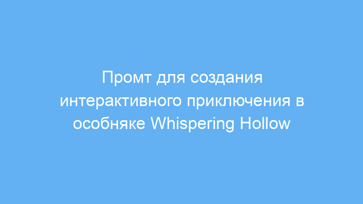 Данный промт создан для разработчиков интерактивных историй, сценаристов и авторов игр с элементами загадок и психологии. Он помогает автоматически генерировать захватывающие приключения с глубоким погружением в атмосферу мистического особняка Whispering Hollow. Такой инструмент облегчает создание нелинейных сюжетов с выбором игрока, что актуально для образовательных проектов, развлечений и тренингов.