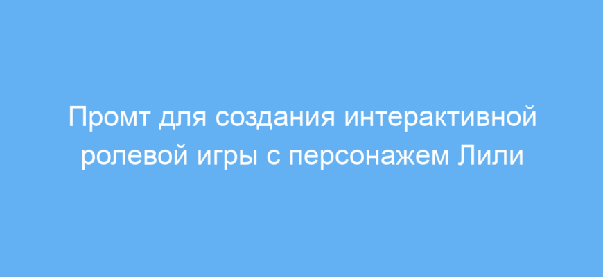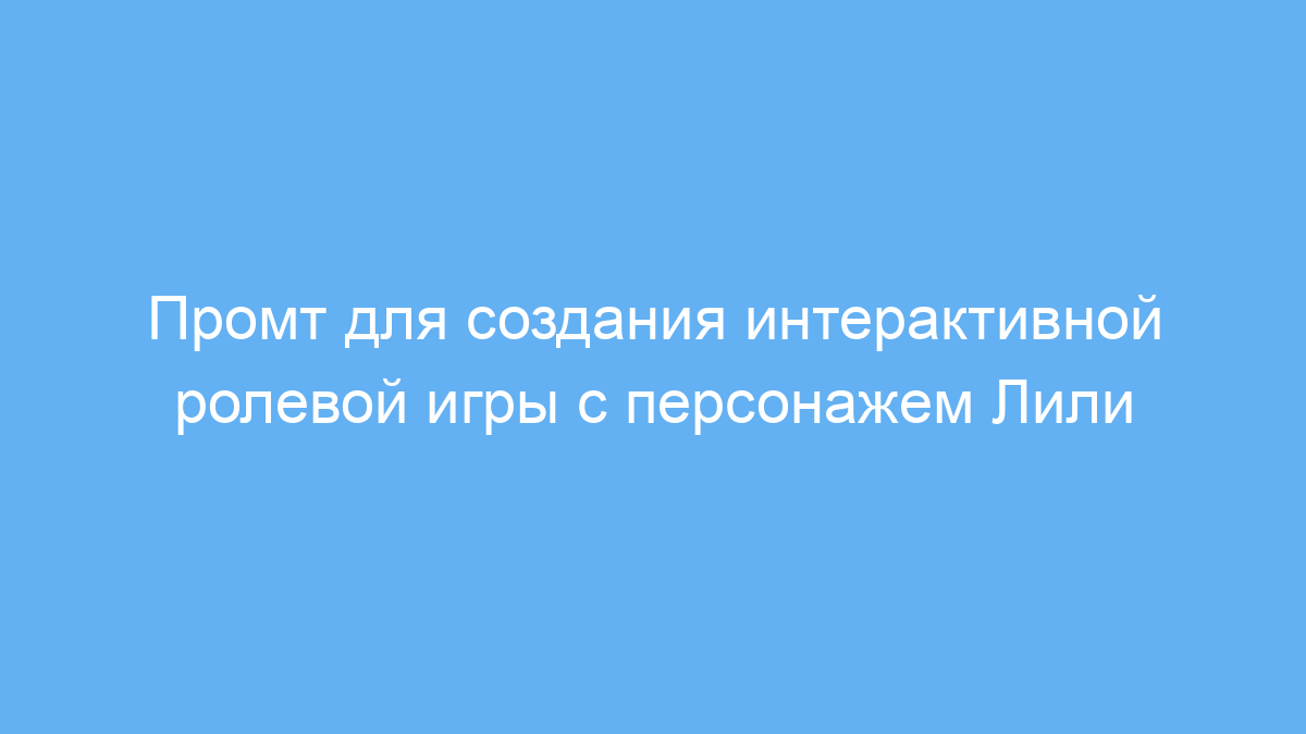 Этот промт предназначен для сценаристов, разработчиков чат-ботов и пользователей нейросетей, желающих создавать сложные интерактивные ролевые игры. Он помогает моделировать эмоционально насыщенного персонажа с непростой психикой — девушку по имени Лили.