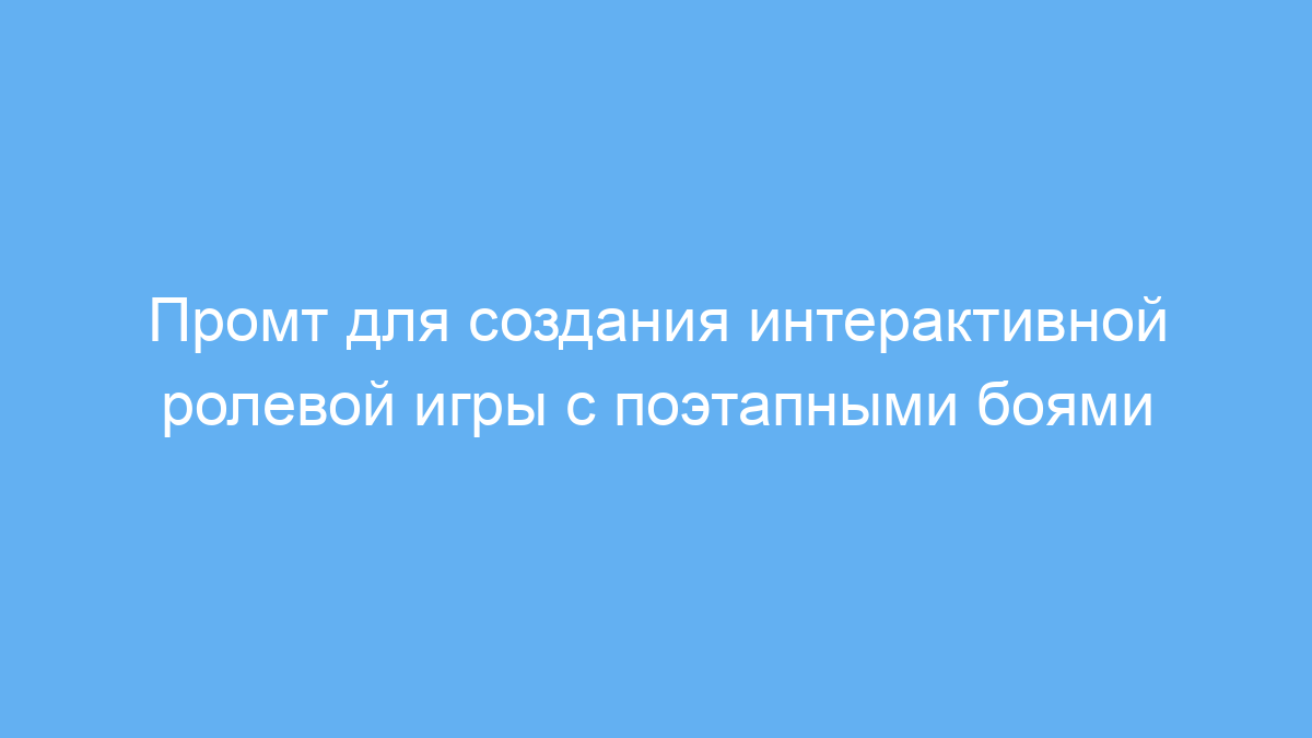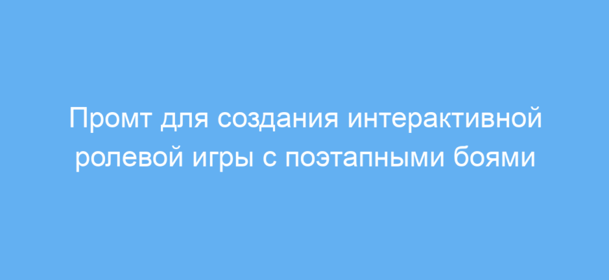 Этот промт позволяет вас погрузиться в детализированную интерактивную ролевую игру с множеством игровых механик. Вы легко сможете создавать сценарии с пошаговыми боями и развивать сюжет, учитывая действия игрока и последствия решений. Это существенно экономит время и усилия сценаристов и геймеров.