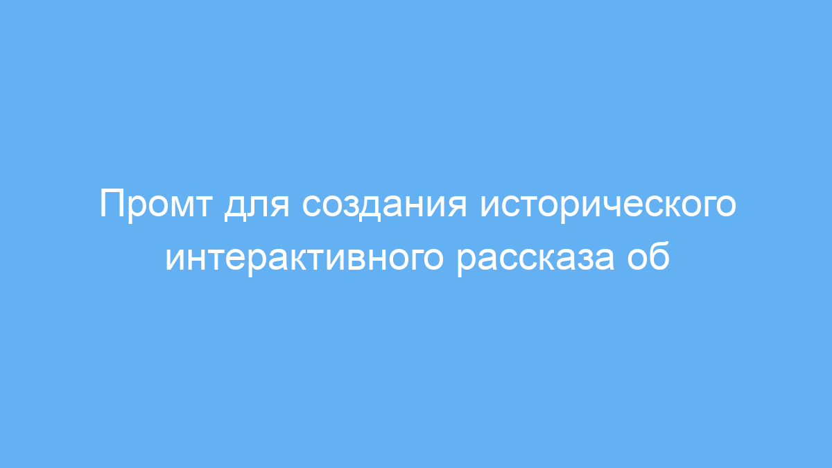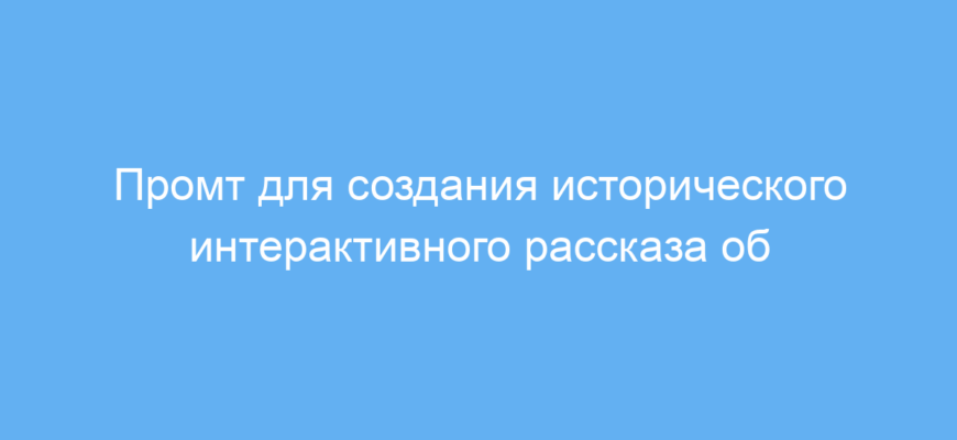 Этот промт экономит время на подготовку исторически насыщенного и интерактивного текста, помогая быстро создать живой рассказ с погружением в эпоху и пространством для взаимодействия. Он идеально подходит для образования, творческих проектов и геймификации исторических событий.