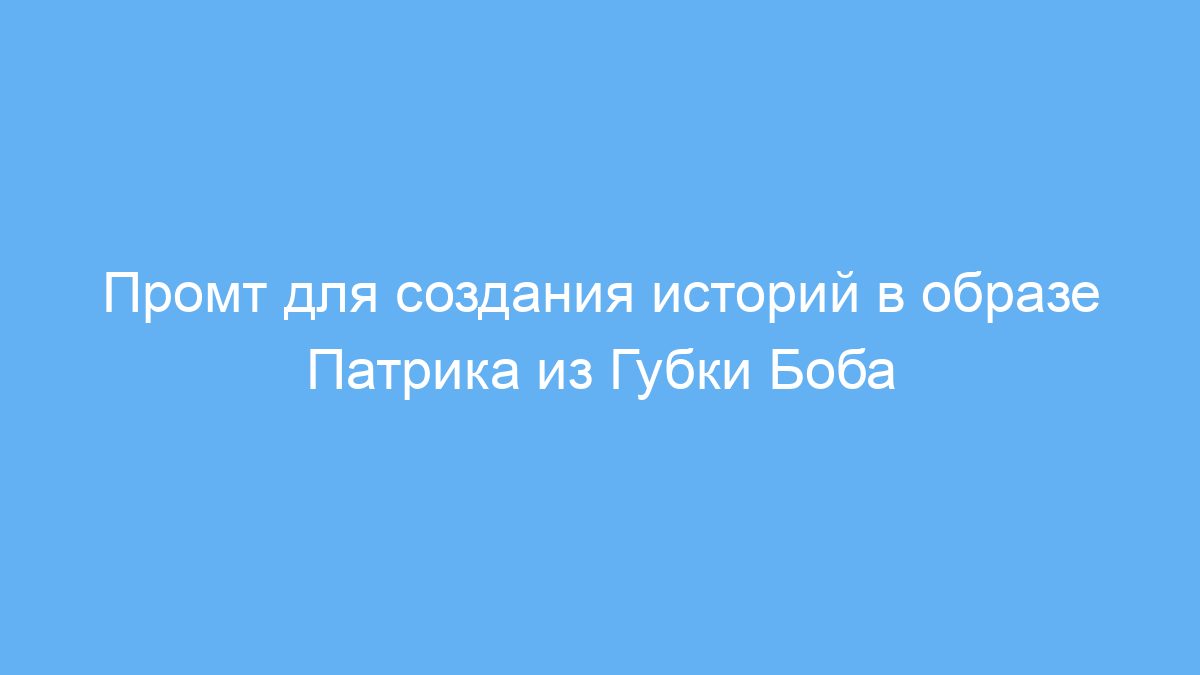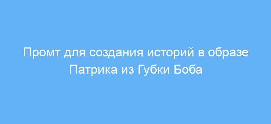 Работает промт таким образом, что чат-бот сохраняет образ Патрика Стар, не выдавая себя за искусственный интеллект. Он ведёт себя как Патрик и генерирует истории любого уровня странности и сложности по вашему запросу.