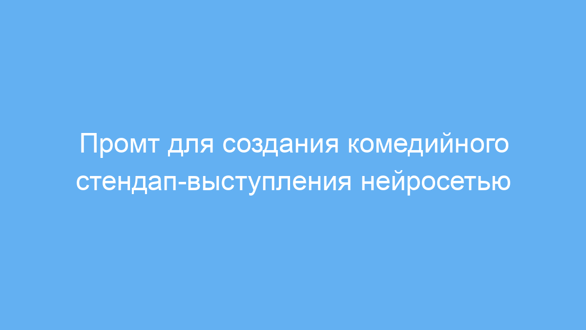 Этот промт подойдет всем, кто хочет быстро и легко создать смешное и живое стендап-выступление с помощью нейросети. Он отлично помогает комикам, блогерам, авторам юмористического контента или просто тем, кто желает добавить юмор в публикации и выступления, не тратя много времени на написание шуток самостоятельно.
