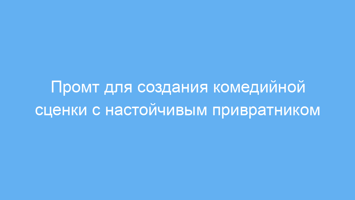 Этот промт предназначен для тех, кто хочет получить забавную и оригинальную реплику от нейросети в формате комедийной сценки. Особенно он полезен для сценаристов, блогеров, создателей контента и всех, кто хочет оживить диалоги необычным образом.
