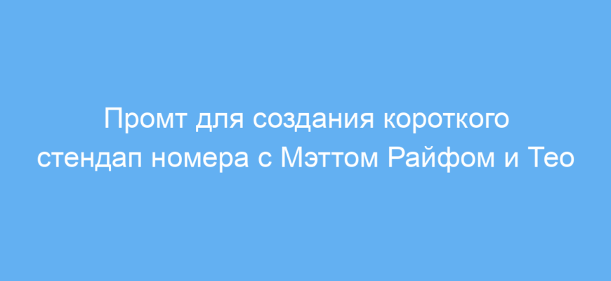 Промт работает просто: вы задаёте тему, имена участников и описание ситуации. Нейросеть анализирует эти детали и создаёт забавный и логичный стендап номер по заданному запросу.