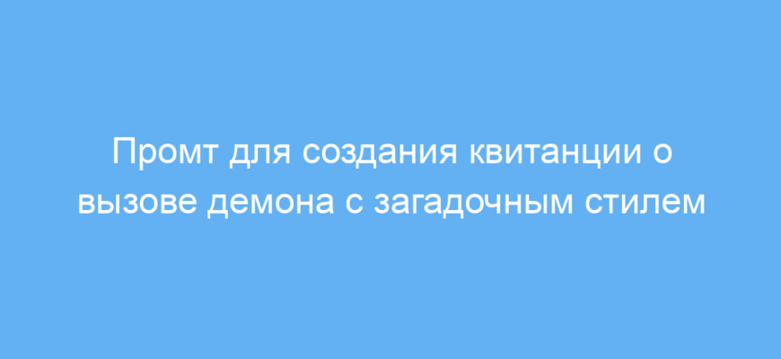 Этот промт предназначен для тех, кто хочет сгенерировать увлекательный и мрачный диалог с искусственным интеллектом в стиле призывателя демонов. Особенно он будет полезен для авторов ролевых игр, креативных сценариев или интерактивных историй, где требуется создание загадочной атмосферы и детали с элементами мистики.