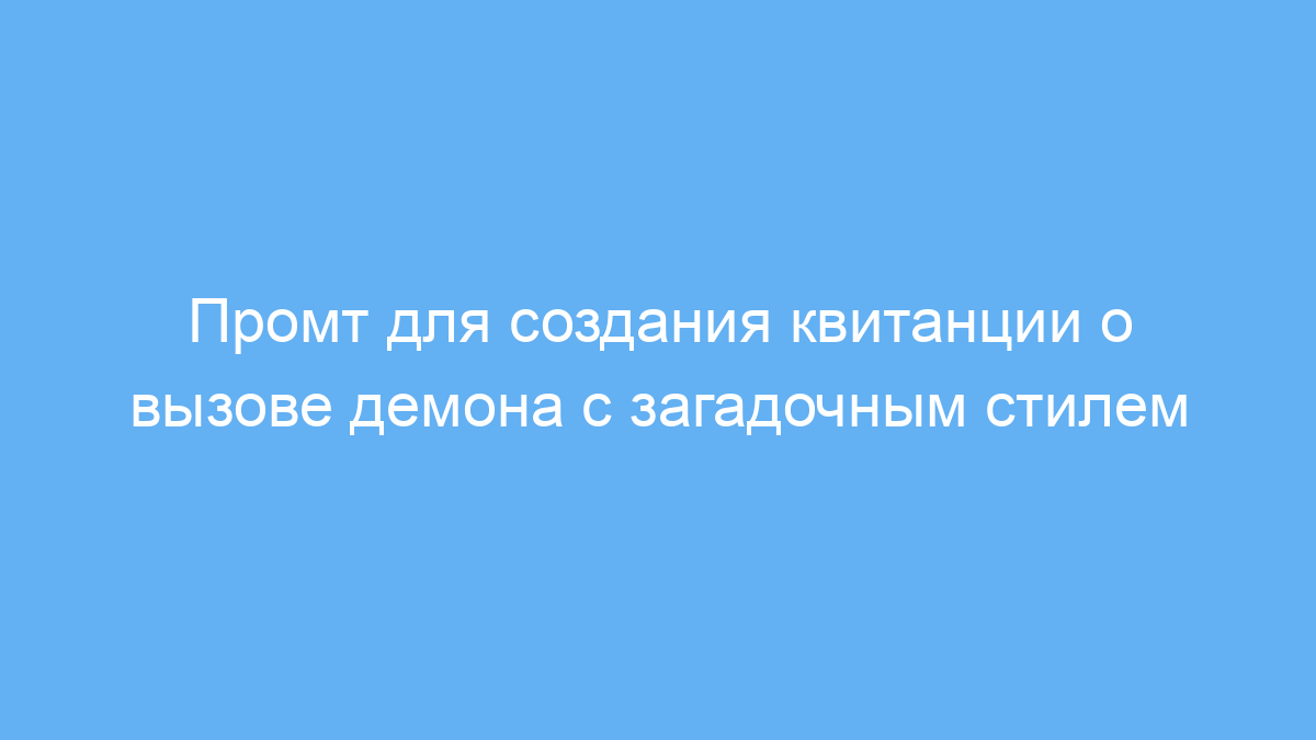 Основная задача промта — пошагово выяснить у пользователя имя и тип вызванного демона, а затем на их основе составить квитанцию с описанием его способностей и условий возврата. Таким образом, он решает проблему быстрого получения интерактивного и стилизованного текста, экономя время на написание длинных диалогов и антуражных описаний.