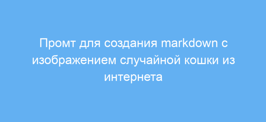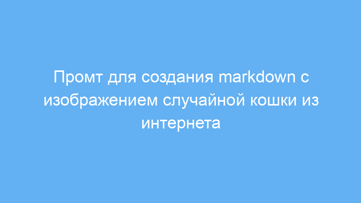 Пример 2. Генерация случайного изображения кошки для тестирования шаблонов сайтов. Этот промт позволяет быстро получить рабочий markdown с картинкой, чтобы проверить, как изображения отображаются на странице.