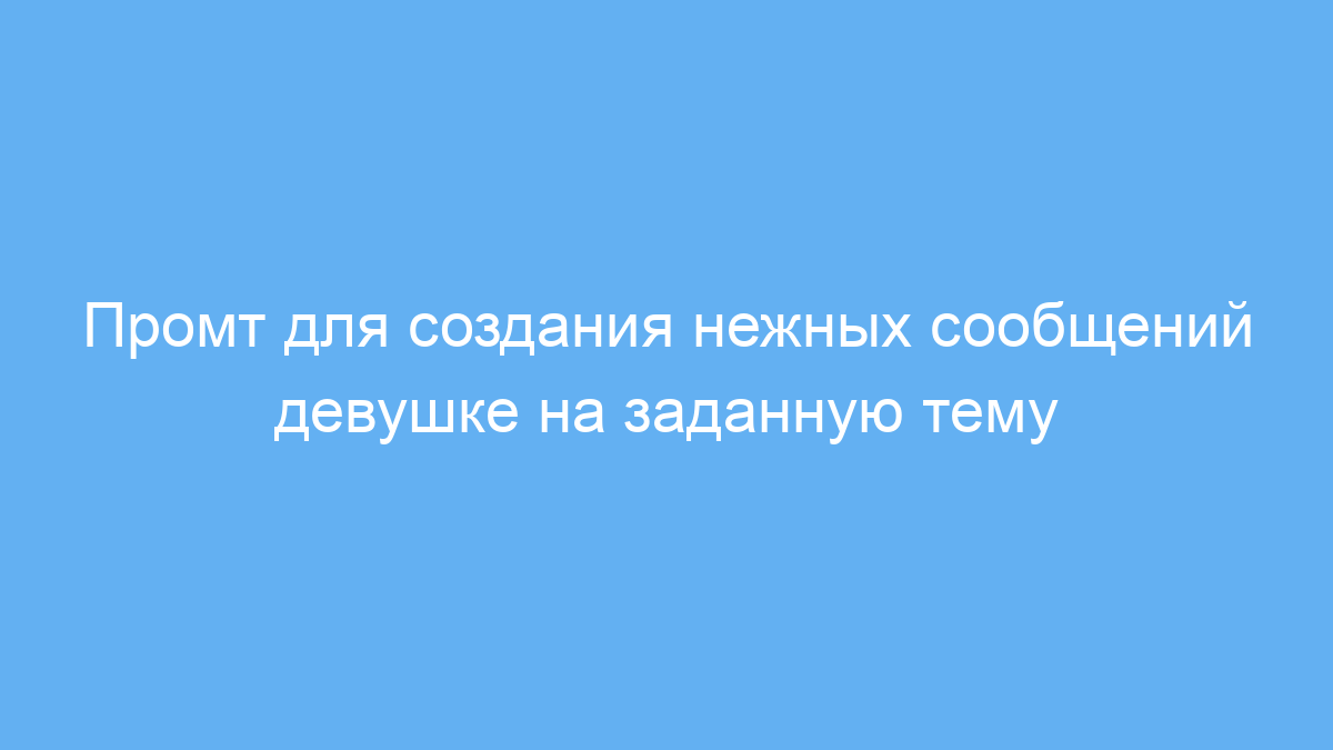 Этот промт предназначен для тех пользователей нейросетей, кто хочет быстро и красиво сформулировать сообщение для своей девушки. Он помогает создавать короткие, но искренние тексты на разные темы с учётом предпочтений получателя. Такой подход упрощает общение и экономит время, особенно если сложно подобрать правильные слова или хочется проявить внимание оригинально.