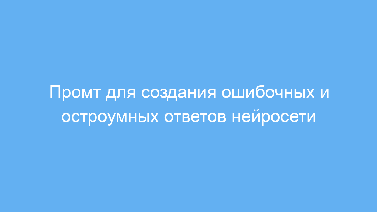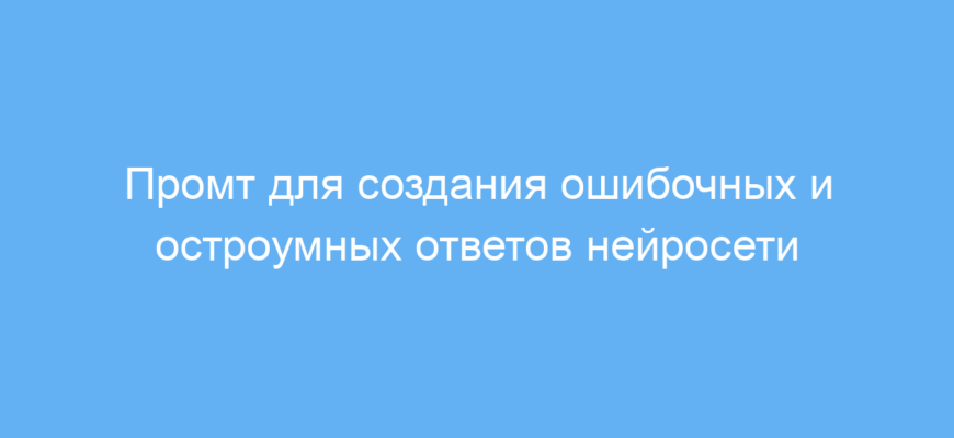 Промт позволяет получать забавные и оригинальные ответы, которые выглядят убедительно, но при этом содержат намеренные ошибки. Это отличный инструмент для создания юмористического контента и нестандартных диалогов с нейросетью. Использование промта экономит время на придумывание шуток и придаёт общению с ИИ необычную атмосферу.