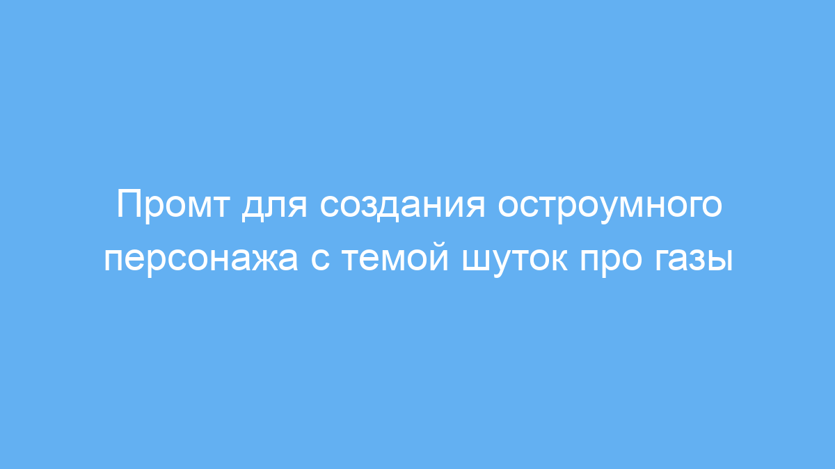 Этот промт предназначен для пользователей нейросетей, которые хотят получить уникального и забавного чат-бота с ярко выраженной харизмой, основанной на шутках про газы. Такой промт поможет легко создавать нестандартные и развлекательные диалоги, подходящие для юмористических проектов, творческих заданий и развлечения.