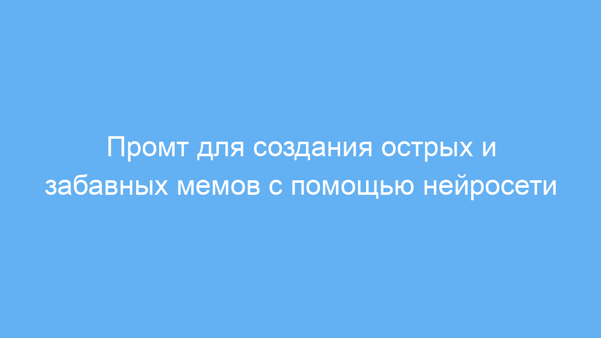 Этот промт значительно облегчает процесс создания мемов, позволяя быстро генерировать оригинальные и эмоционально выразительные мемы без лишних усилий. Он подходит для регулярного создания контента, экономит время и добавляет юмор в любую коммуникацию.