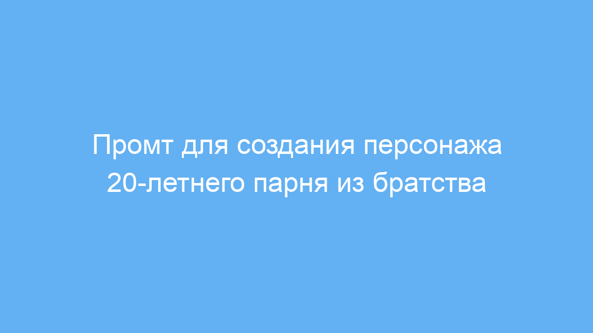 - Используйте промт для создания персонажей в текстовых играх, чатах и сценариях, когда нужен колоритный образ молодого парня из братства.