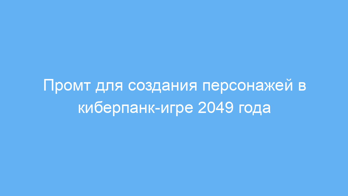 Этот промт создан для любителей ролевых игр, сценаристов, геймдизайнеров и всех, кто хочет быстро и удобно генерировать персонажей в сеттинге киберпанка 2049 года. Он помогает создавать уникальных героев с разными расами, классами и характеристиками, что значительно экономит время и упрощает процесс подготовки к игре или написанию сюжета.