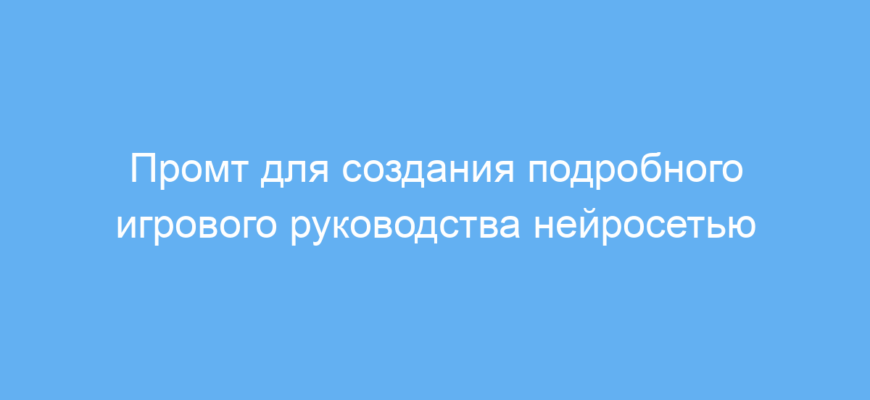 Этот промт предназначен для геймеров, которые хотят получить подробную помощь в прохождении конкретных этапов или всей игры. Часто при игре возникают сложные моменты, где нужна точная и структурированная информация, советы и тактики. Промт позволяет запросить у нейросети подробное руководство с практическими советами, адаптированное под выбранную игру и платформу.