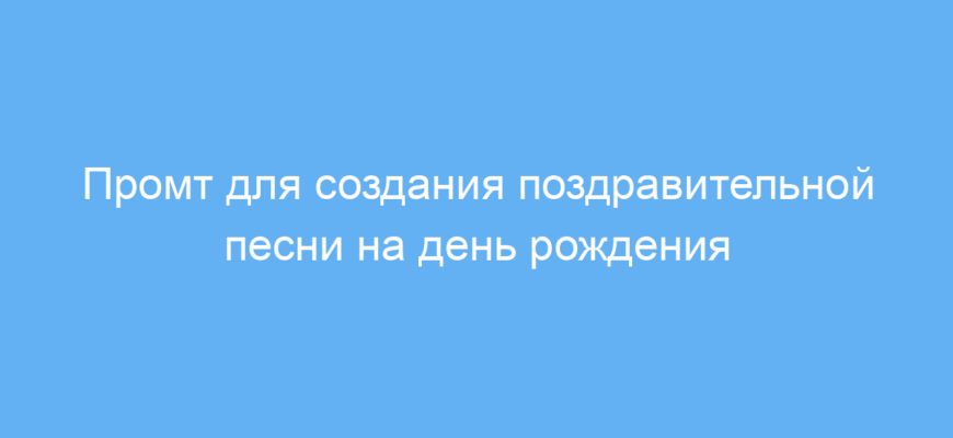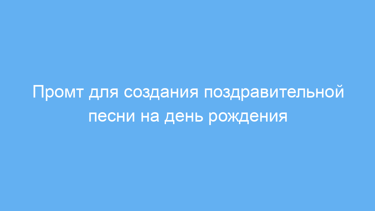 Этот промт подходит всем, кто хочет быстро и просто получить уникальный поздравительный текст в формате песни. Он поможет составить красивое и тёплое поздравление на день рождения, которое можно использовать для открыток, видеообращений или живого исполнения. Особенно полезен этот промт для организаторов праздников, блогеров, педагогов и тех, кто занимается созданием креативного контента.