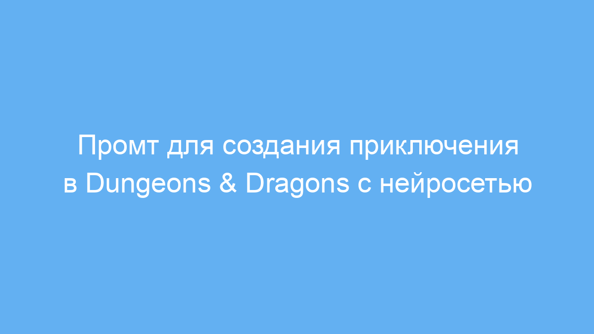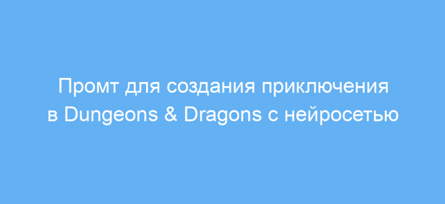 Этот промт сокращает время подготовки к игре в Dungeons & Dragons, позволяет удобно играть одному с нейросетью в роли Мастера Подземелий и получить атмосферное приключение с описаниями и интерактивным сюжетом. Он подходит для новичков и опытных игроков, которые хотят потренироваться или насладиться игрой без поиска группы.