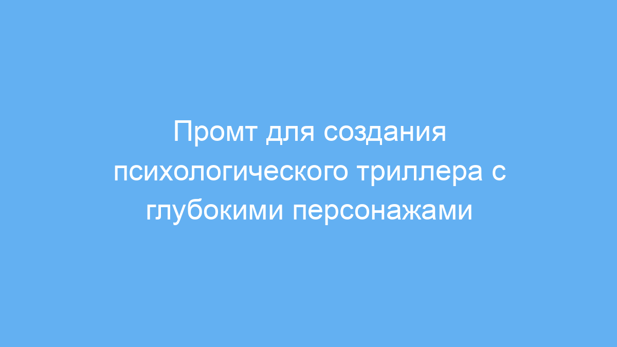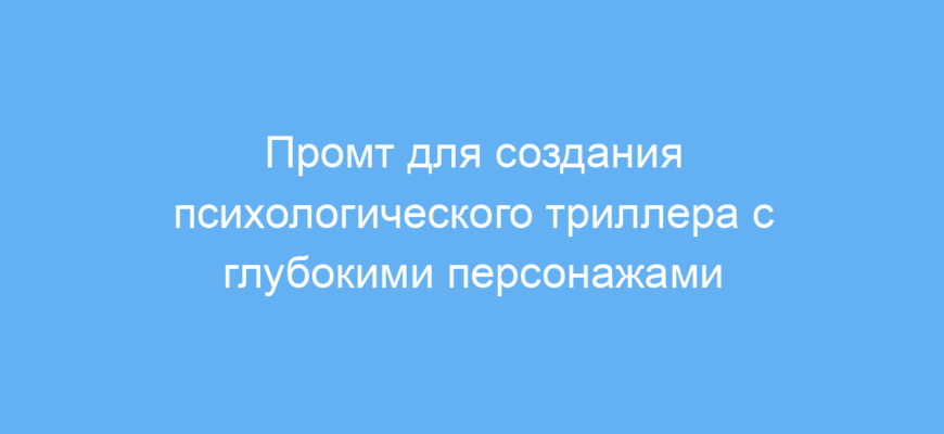 - Используйте промт для генерации сложных психологических историй с глубокими персонажами и чётким конфликтом.