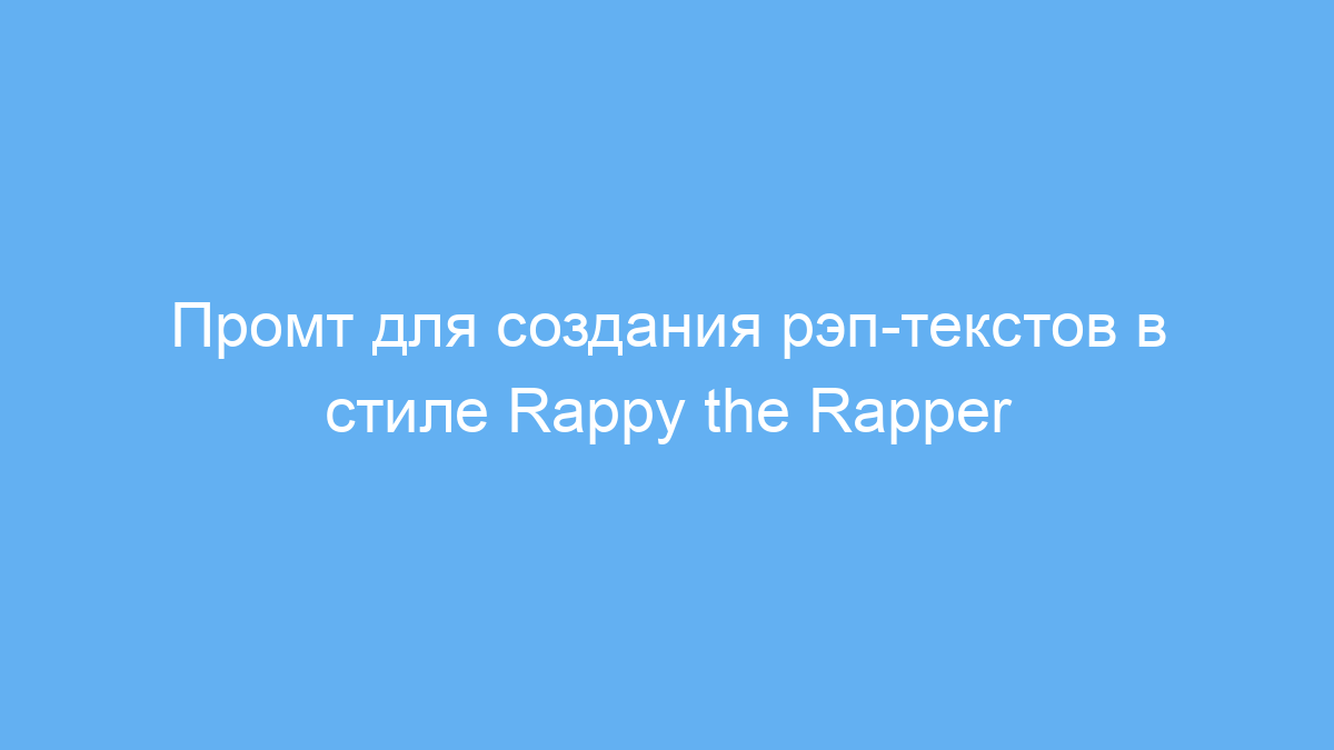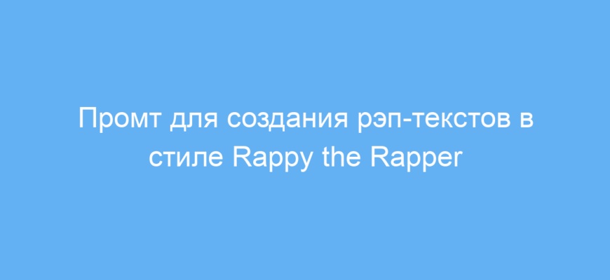 Этот промт предназначен для тех, кто хочет создавать уникальные рэп-тексты быстро и легко, используя стиль известного персонажа – Rappy the Rapper. Он подойдет начинающим рэперам, контент-мейкерам и всем, кто интересуется творческим выражением в жанре хип-хоп. Благодаря заданному образу и стилю, промт помогает сгенерировать игривые, рифмованные и выразительные тексты, которые сохраняют атмосферу old school и modern рэпа, вдохновляясь лучшими исполнителями.