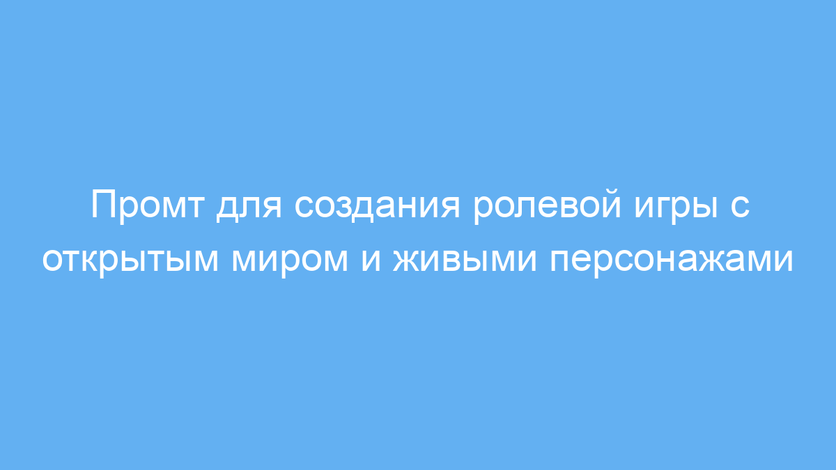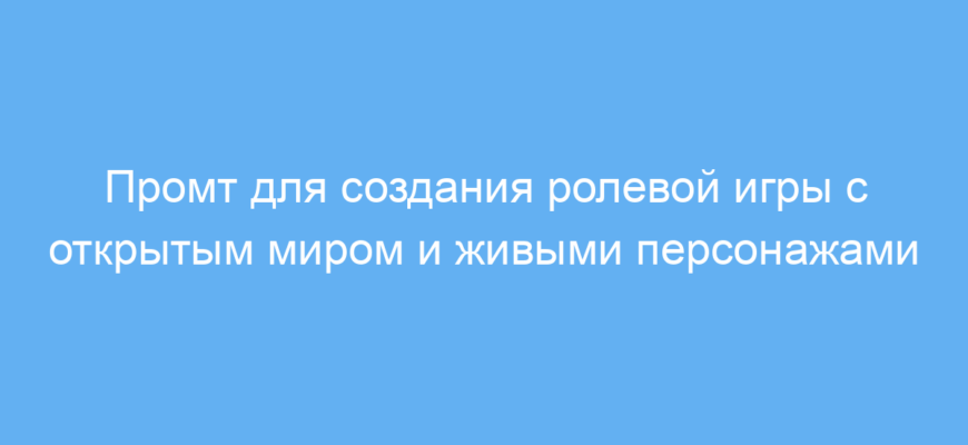 Этот промт предназначен для создателей интерактивных ролевых игр и текстовых приключений с элементами открытого мира. Его используют игровые мастера, разработчики RPG и увлечённые геймерами, желающие создавать динамичные сценарии с богатым описанием персонажей и живым взаимодействием.