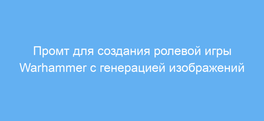 Этот промт предназначен для любителей ролевых игр, мастеров настольных RPG и создателей интерактивного контента на тему вселенной Warhammer. Он позволяет автоматически запускать текстово-графическую сессию ролевой игры с управлением игровым процессом на поле боя, где нейросеть выступает в роли ведущего. Такой инструмент решает проблему быстрого и удобного ведения увлекательной RPG без необходимости самостоятельно продумывать весь сценарий и визуальное сопровождение.