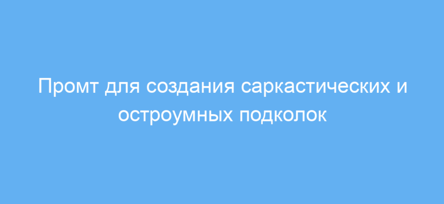 Этот промт позволяет быстро и просто создавать остроумные и саркастичные подколки по любой заданной теме. Он экономит время и усилия, помогая сделать тексты и коммуникацию более живыми и запоминающимися.